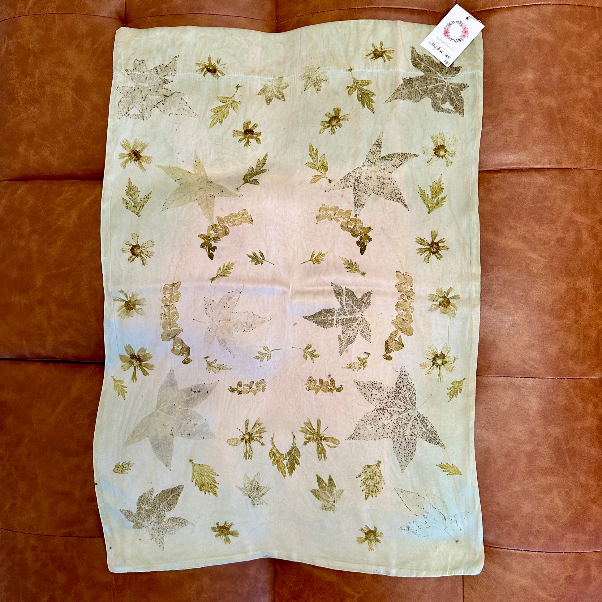 Prints on these pillowcases are created from leaves and flowers grown in the artist's garden in Richmond, VA.