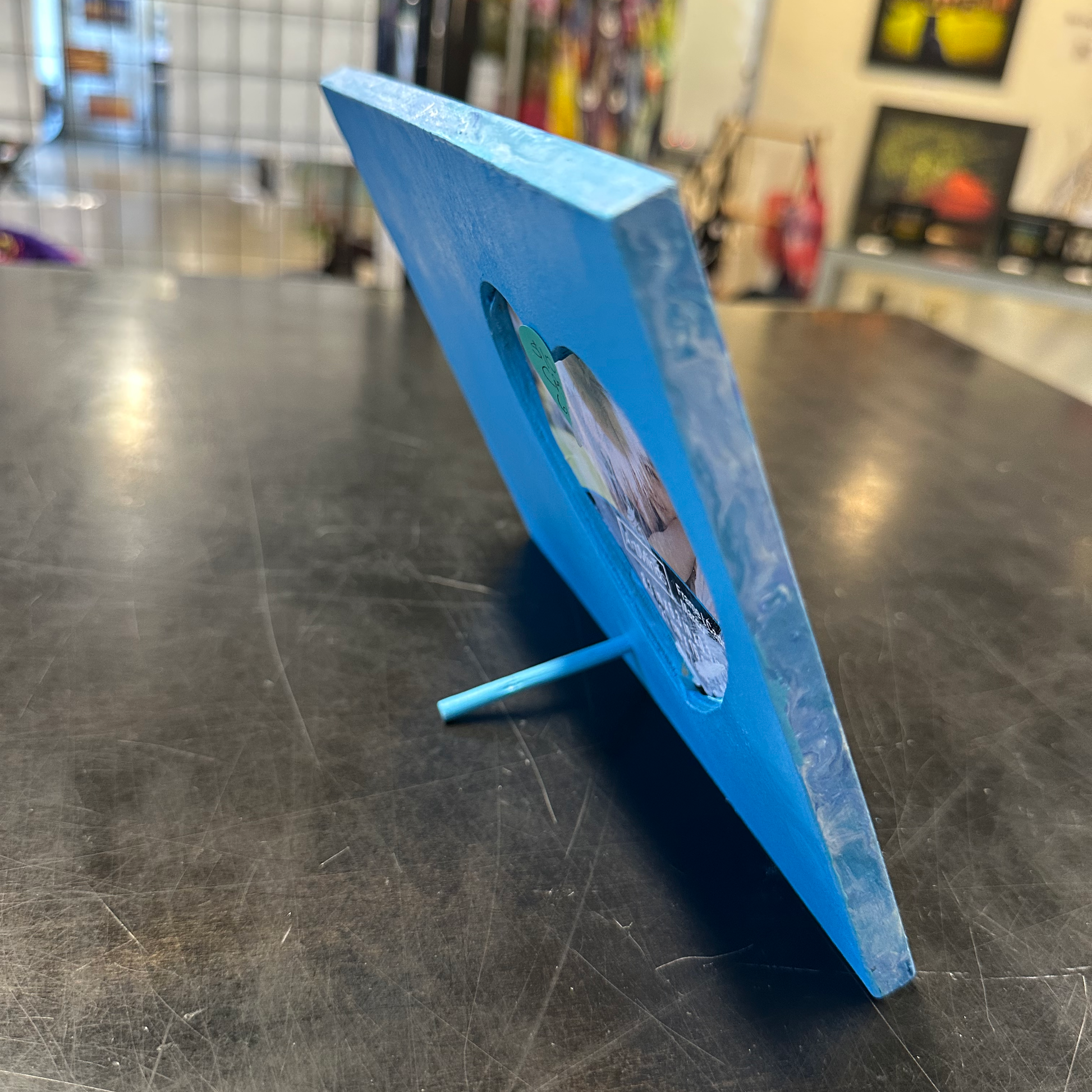 - Wood picture frame with a fluid art technique