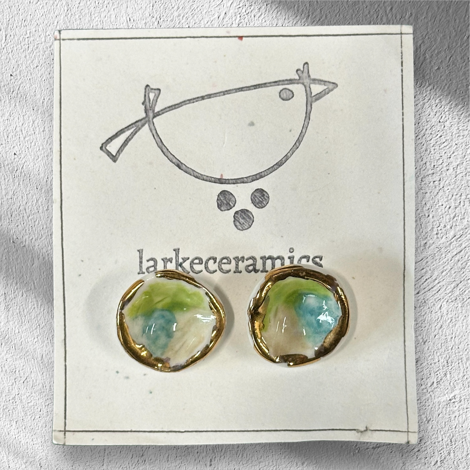Porcelain Stud Earrings with 14k Gold Luster - Design 13